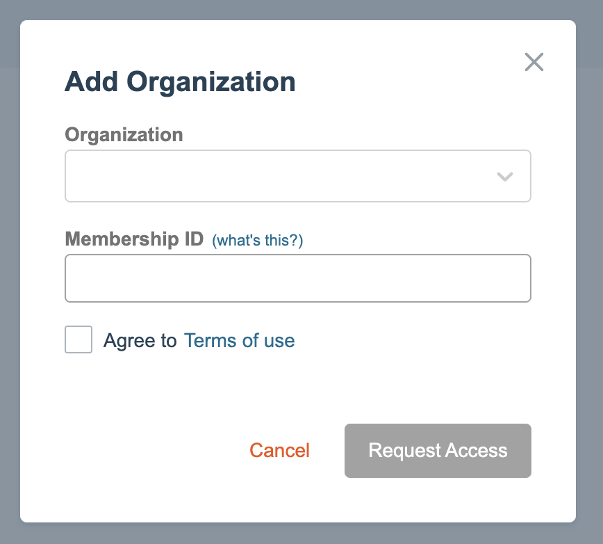 - Input your membership ID for the selected organization